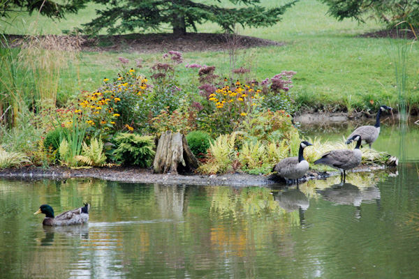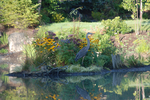 Regardless of the location, floating treatment wetlands will immediately attract wildlife. Whether it’s a Great Blue Heron using the island as a perch for fishing or a Mallard looking for a safe spot to nest, wildlife are drawn to this unique type of habitat. Floating treatment wetlands are also unsurpassed in terms of creating fish habitat in virtually any aquatic environment. Islands simultaneously provide shade, cover and food, readily attracting both small and large fish. In ponds with limited available habitat, islands are an excellent way to boost the productive capacity of the fish community. Check out the gallery of wildlife pictures below interacting with islands.